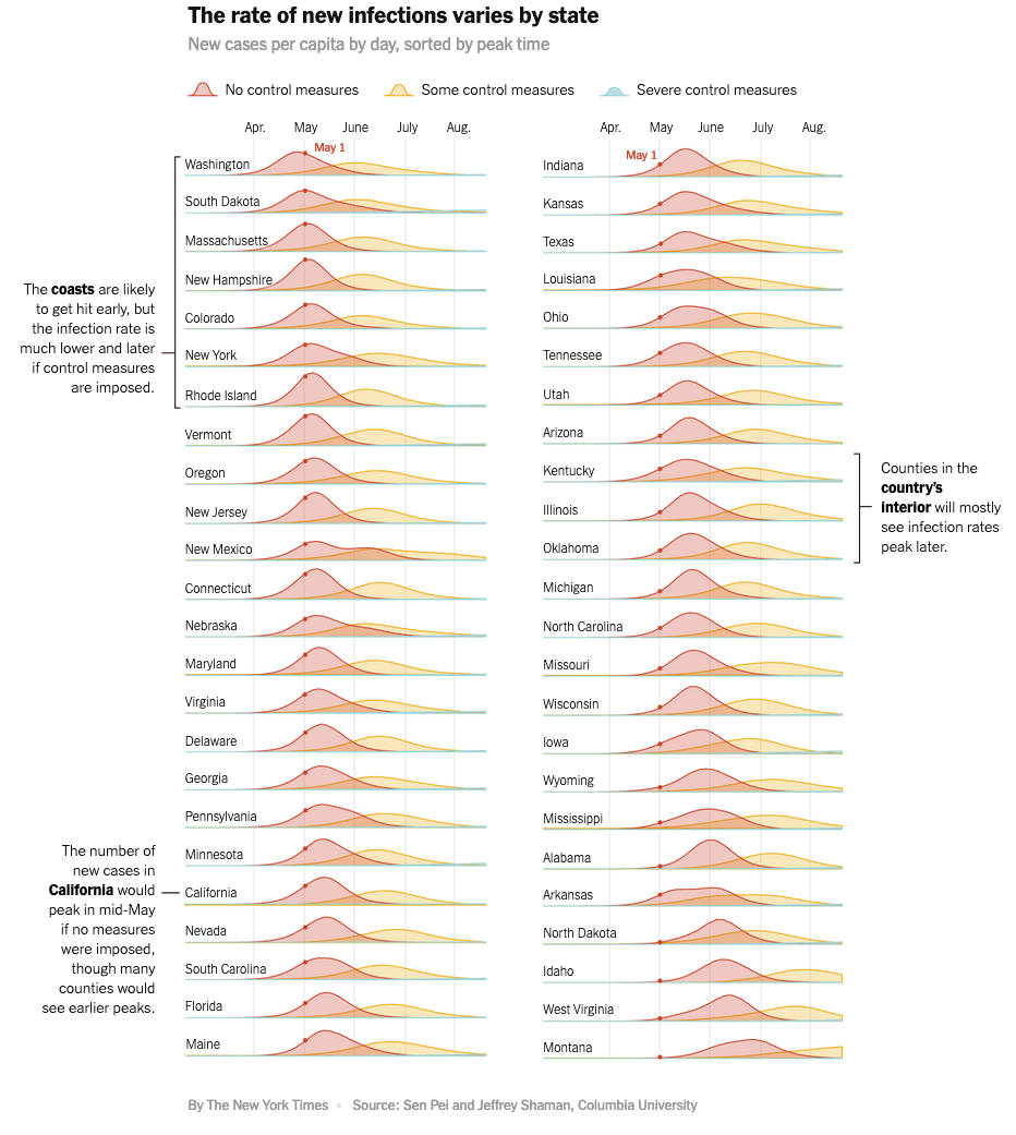 「コロナウイルスは、これまでの検査で示されているよりもはるかに多くの人々に感染しており、今後数ヶ月で病気や死の流れを大幅に食い止めるためには、まだ多くの症例を見ない国の一部での社会的接触を制限するための厳しい措置が必要だ」とNew York Timesの記事が伝えています。